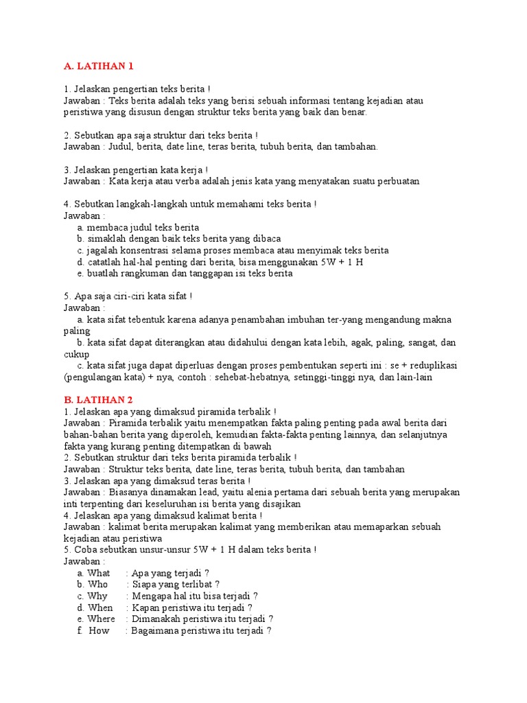 Soal Essay Dan Jawaban Bahasa Indonesia Kelas 8 - contohsoal.net