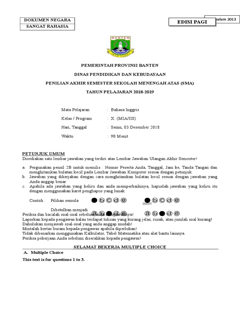 Soal PAS Bahasa Inggris X 2018
