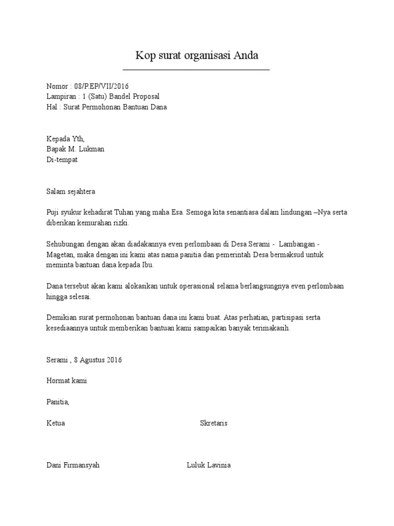 Contoh Surat Proposal Pengajuan Dana | Contoh Soal Dan Materi Pelajaran 8