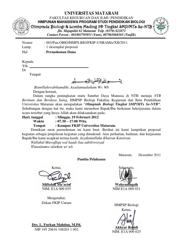 Contoh Surat Pengantar Proposal Bantuan Dana Kegiatan - Berbagi Contoh Proposal