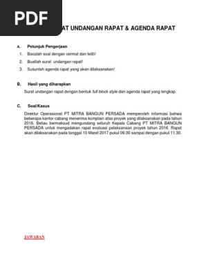 Contoh Surat Undangan Rapat Bentuk Full Block Style - Dapatkan Contoh