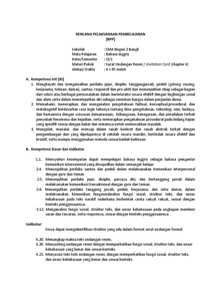 DOC) RPP Bahasa Inggris kelas XI Semester 1 Formal Invitation K.13 | Rifda Eldi Maritsa - Academia.edu