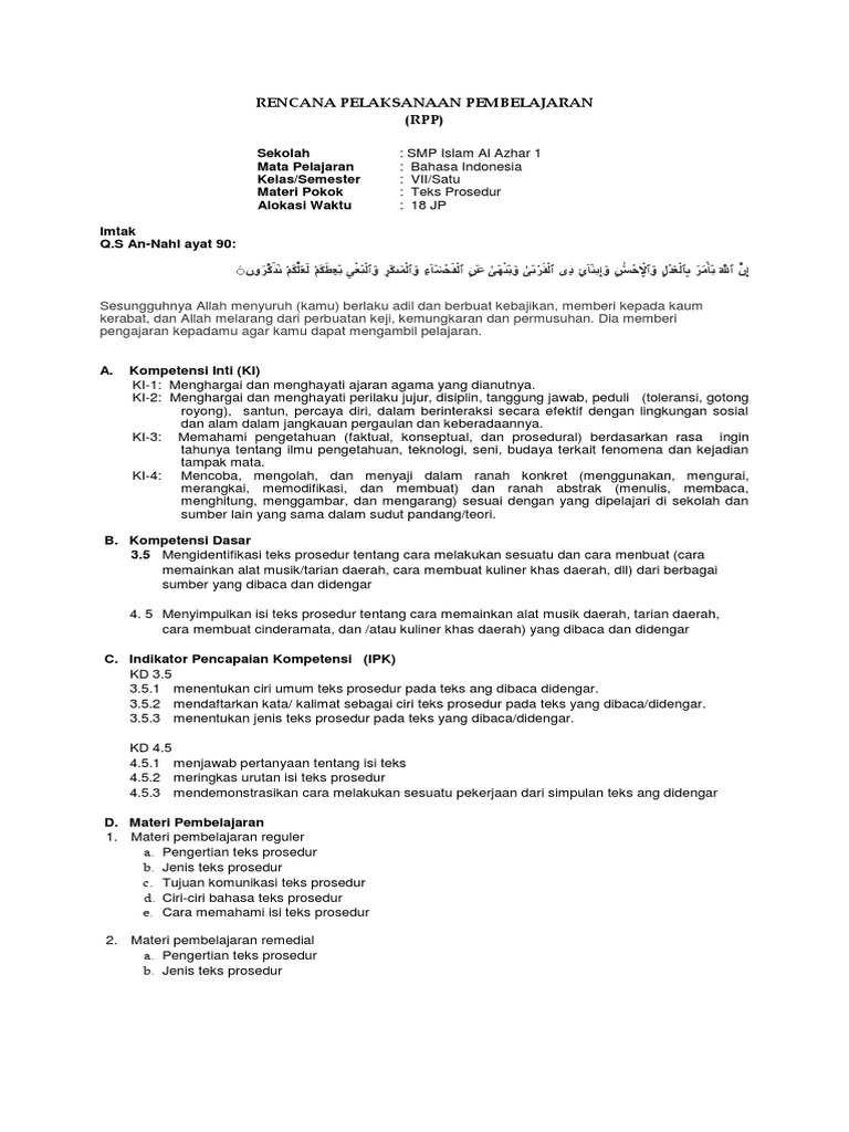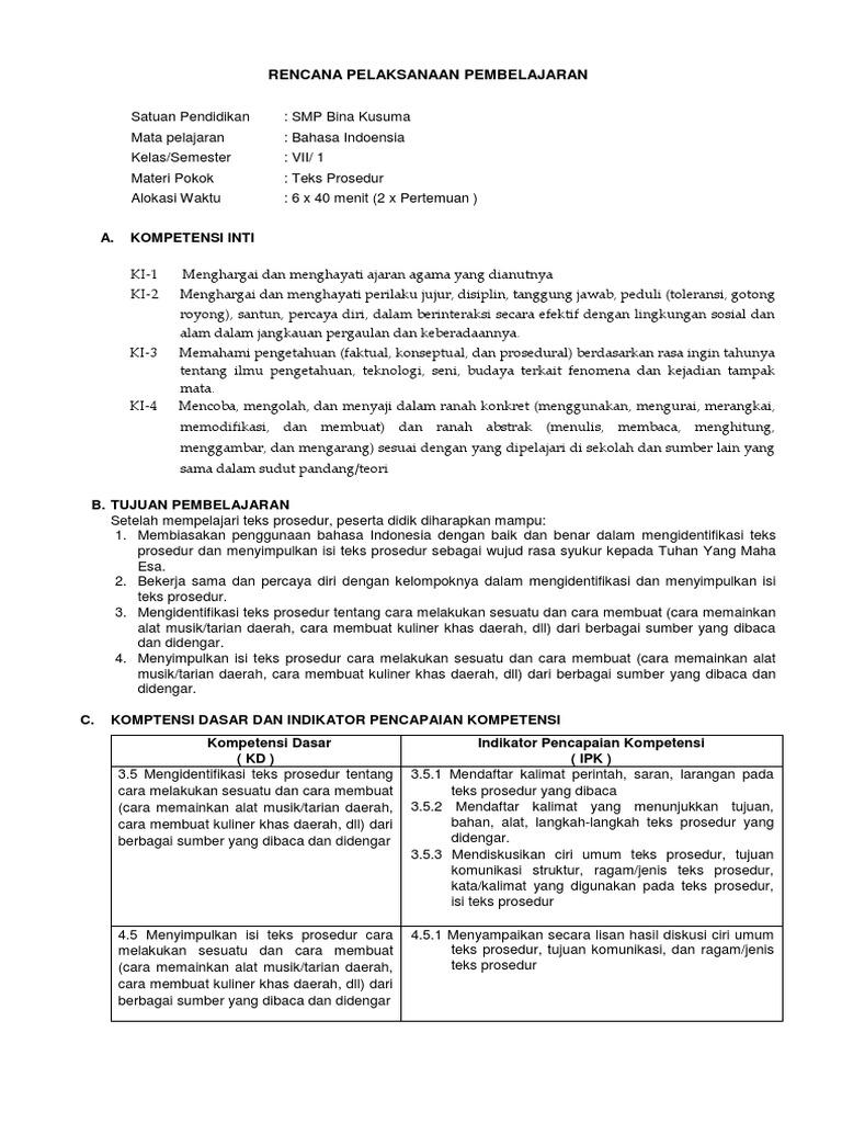 DOC) RPP BAHASA INDONESIA KELAS VII BAB 3 TEKS PROSEDUR.docx | Asisten Nur - Academia.edu