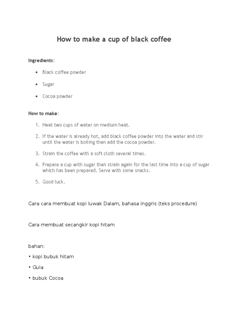 Contoh Teks Prosedur Bahasa Inggris Membuat Kopi - Dapatkan Contoh