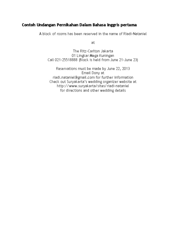 Contoh Undangan Pernikahan Dalam Bahasa Inggris Pertama