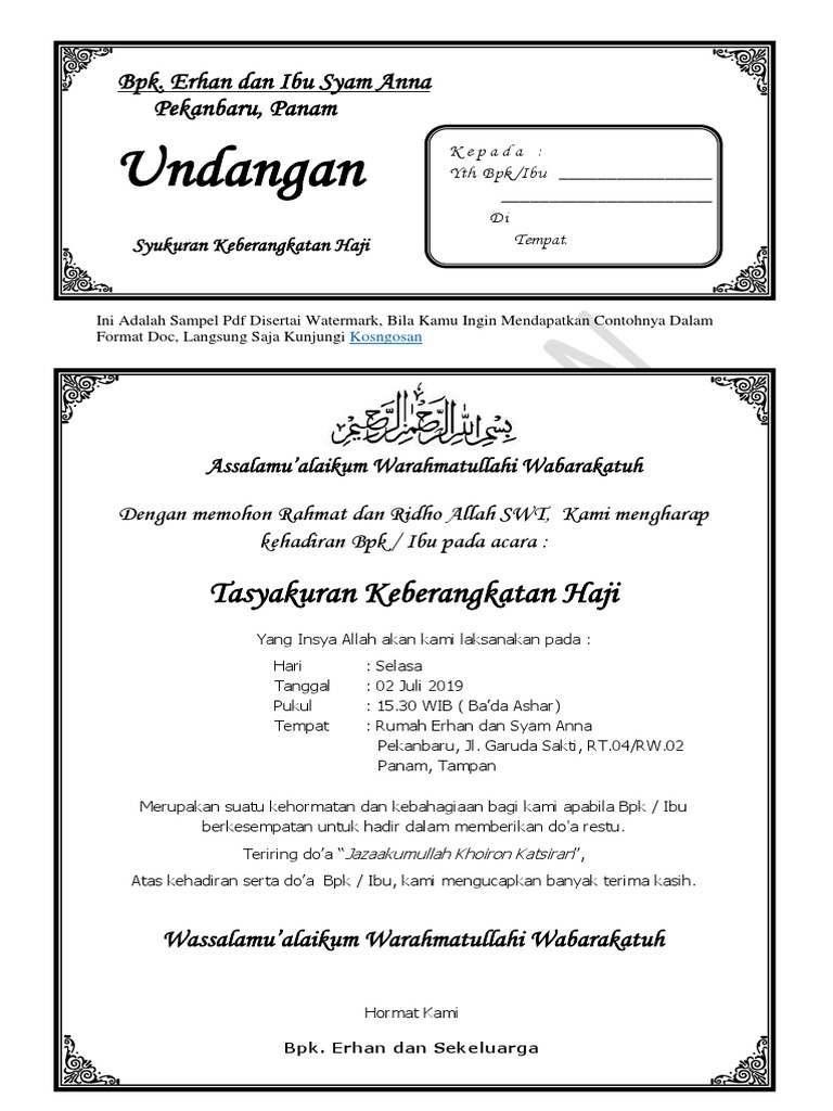 PDF) CONTOH UNDANGAN TASYAKURAN HAJI.pdf | reza harahap - Academia.edu