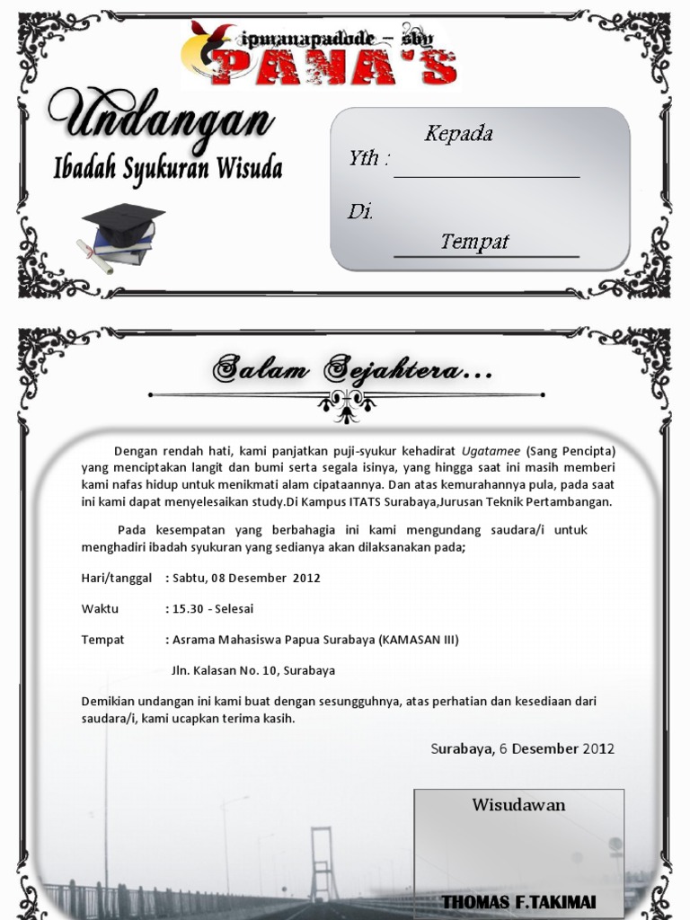 Surat Undangan Ibadah Syukuran Wisudah Bung Thom F.T