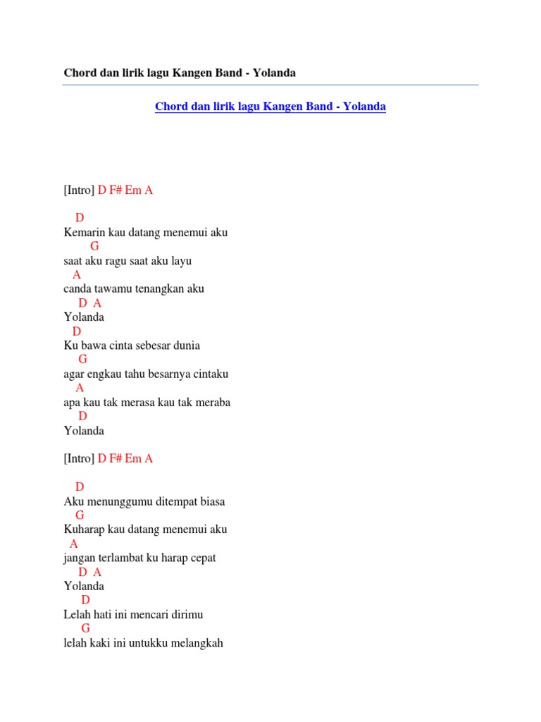 Lirik Lagu Kangen Band - Yolanda Chords - Chordify