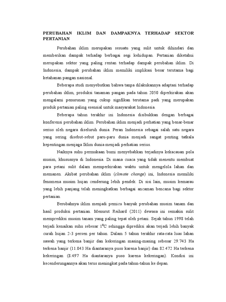 DOC) DAMPAK PERUBAHAN IKLIM TERHADAP PERTANIAN DI INDONESIA DAN | Andryati Kristiningrum - Academia.edu