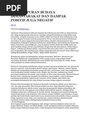 Pencampuran Budaya Dimasyarakat Dan Dampak Positif