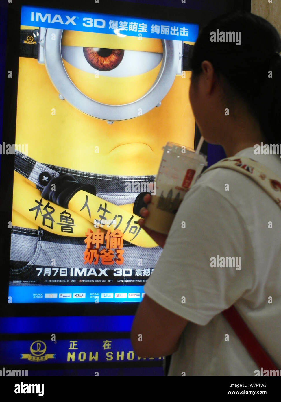 A Chinese filmgoer looks at a poster of the movie “Despicable Me 3” at a cinema in Yichang city, central China’s Hubei province, 8 July 2017. The de Stock Photo - Alamy