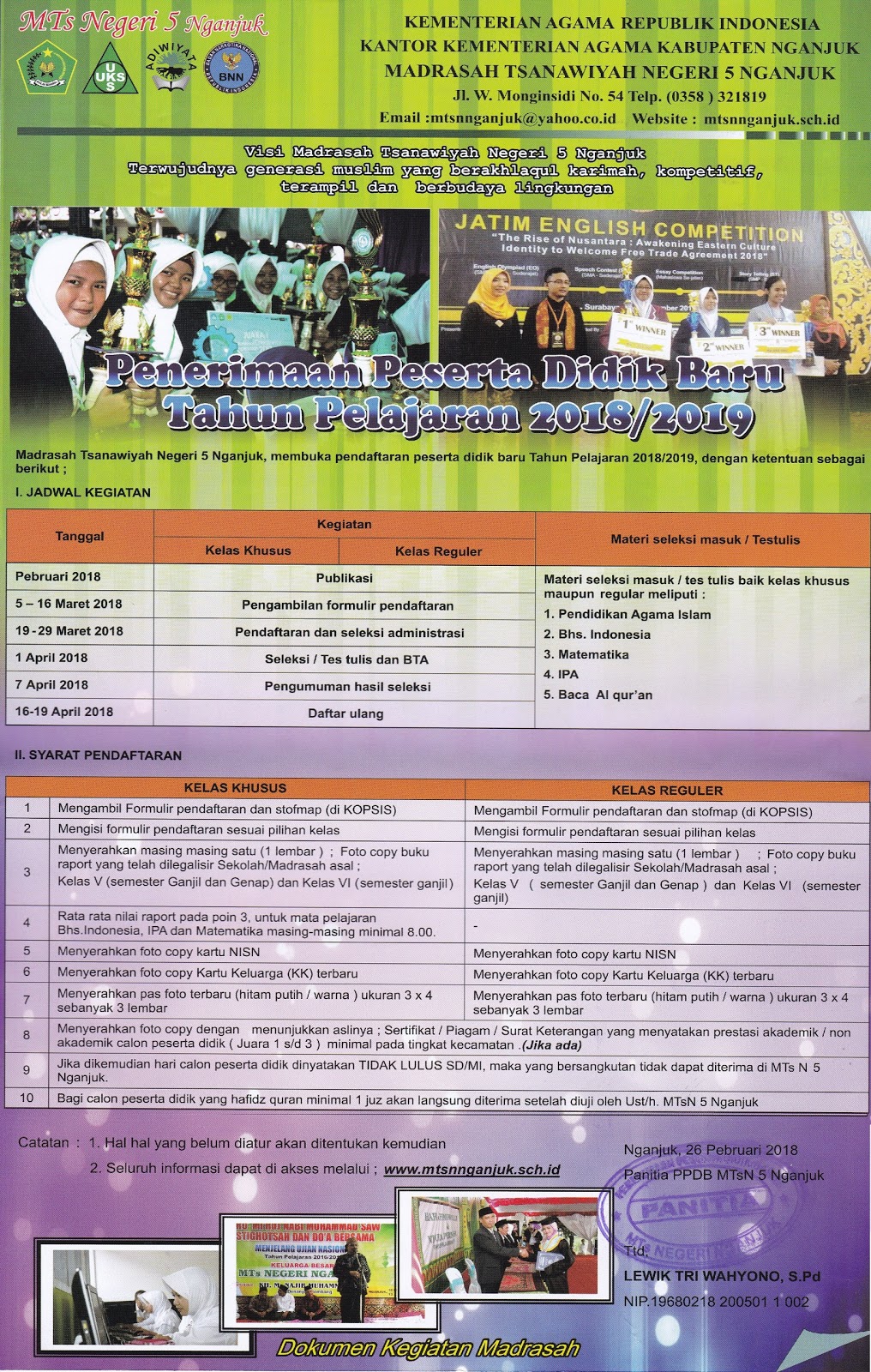 Penerimaan Peserta Didik Baru (PPDB) MTsN 5 Nganjuk Tahun Pelajaran 2018/2019 ~ Website MTsN 5 Nganjuk