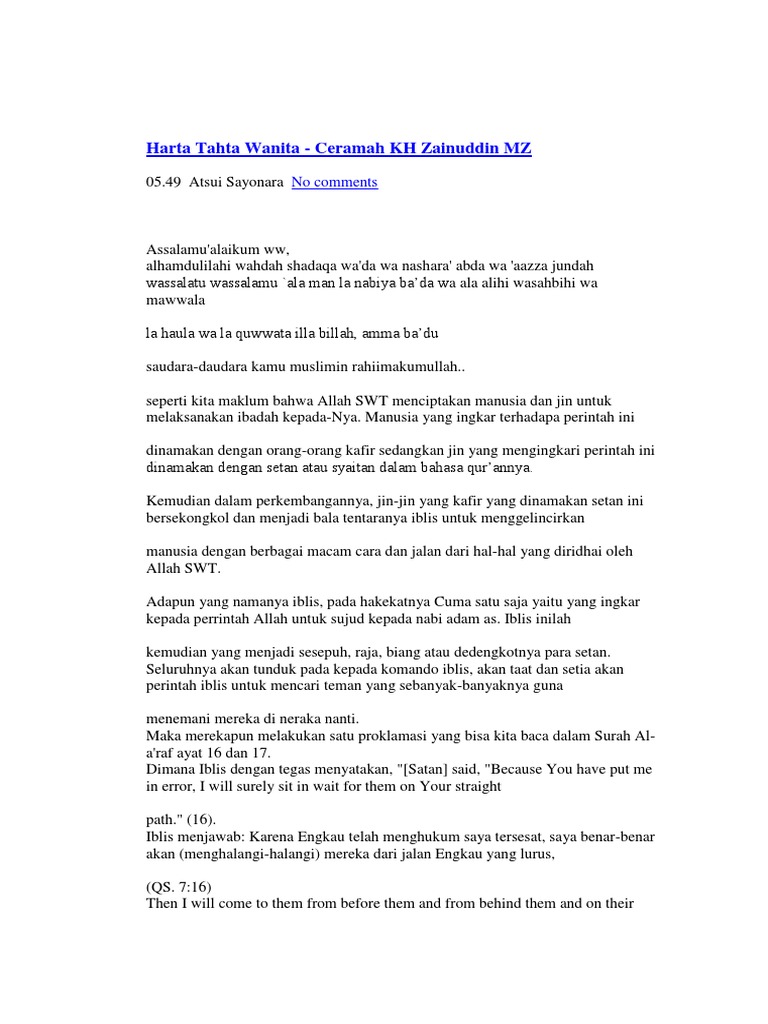 Download Ceramah Kh Zainudin Mz Harta Tahta Dan Wanita