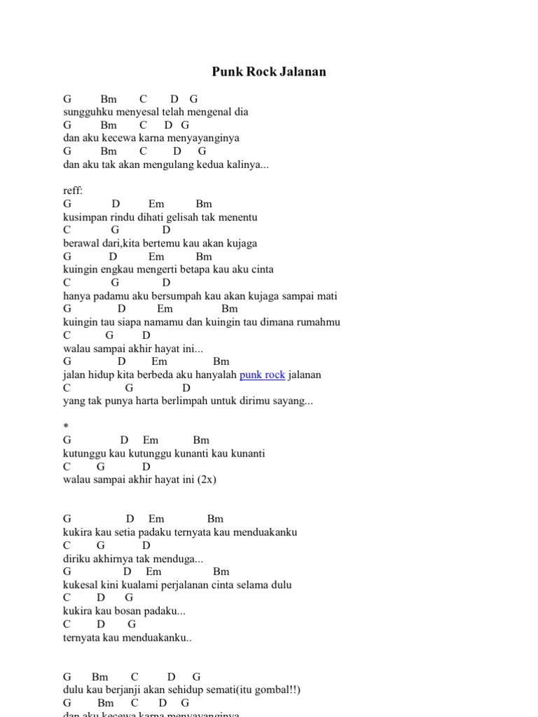 Kunci Gitar Punk Rock Jalanan Sungguh Ku Menyesal