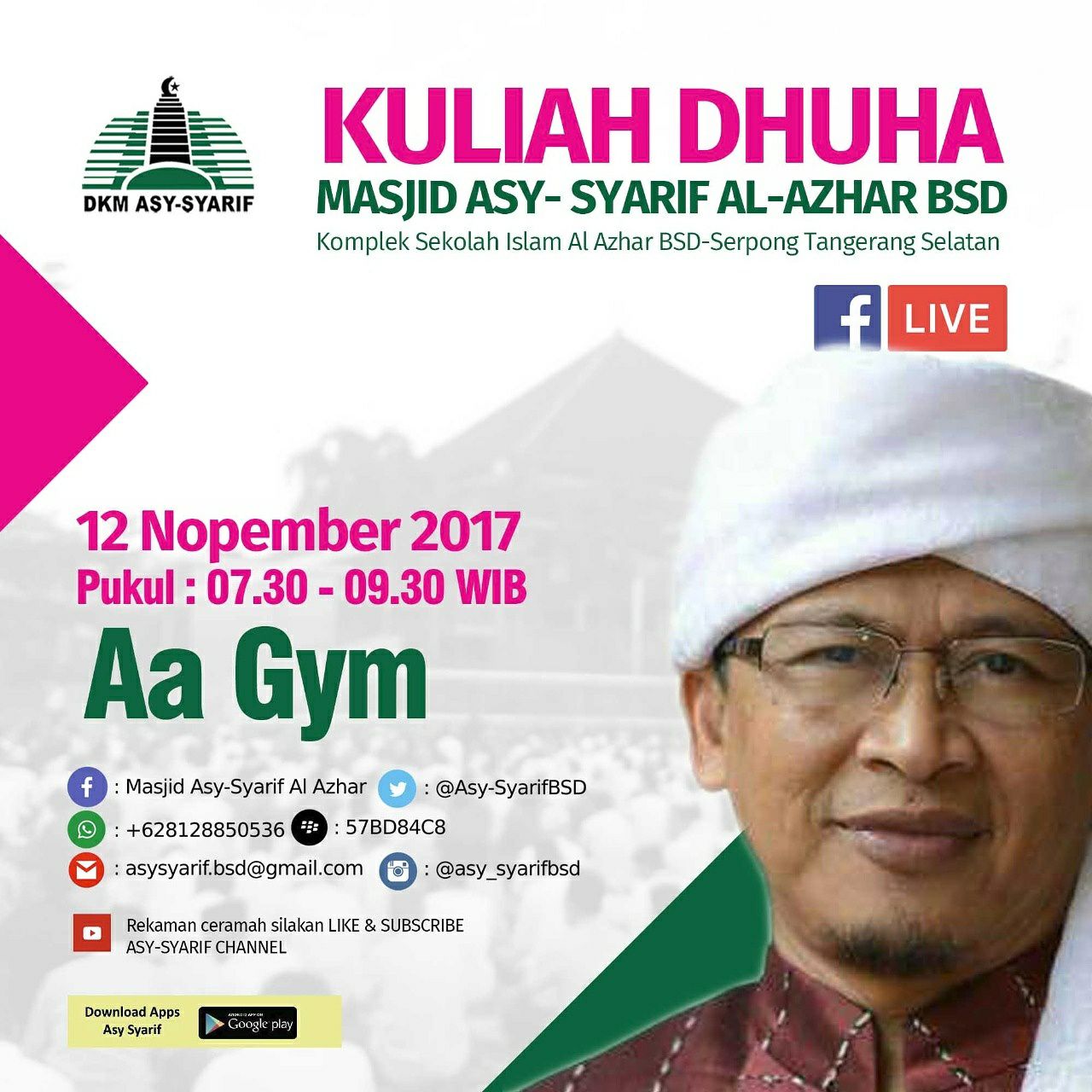 Lintang Wisesa on Twitter: “Mari rapatkan barisan! Kuliah Dhuha @aagym di Masjid @asy_syarifBSD, Ahad 12 Nov 2017 ^_^ #NgajiBareng… "