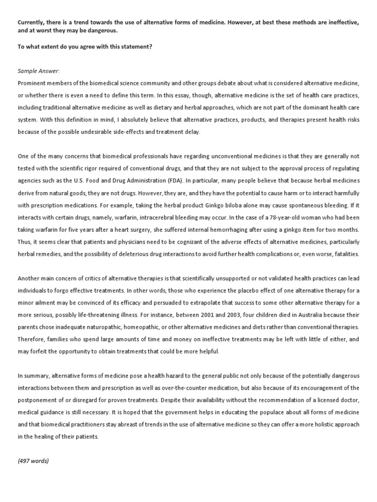 IELTS Writing Task 2 (Type 2) Alternative Medicine (With Sample …