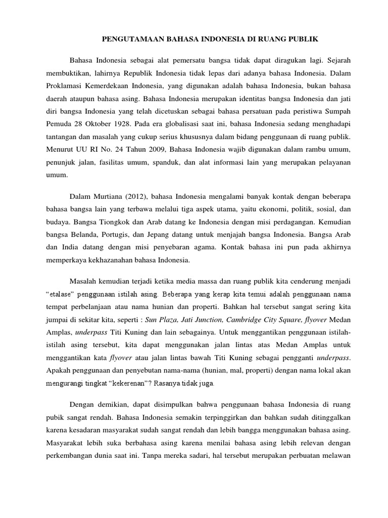 Esai Pengutamaan Bahasa Indonesia Di Ruang Publik Esai
