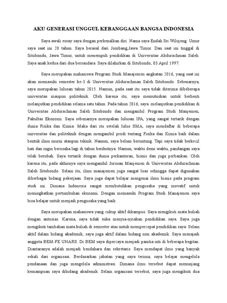 Essay Aku Generasi Unggul Kebanggaan Bangsa Indonesia