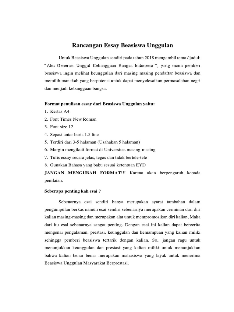 Contoh Essay Beasiswa Unggulan Pdf | Materi Pelajaran 5