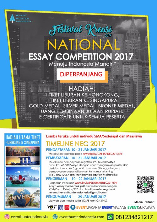 Event Jakarta on Twitter: “[DIPERPANJANG] National Essay Competition 2017 “Menuju Indonesia Mandiri” | https://t.co/ZHUEpzvbdi… https://t.co/gHVfBm14Yw”