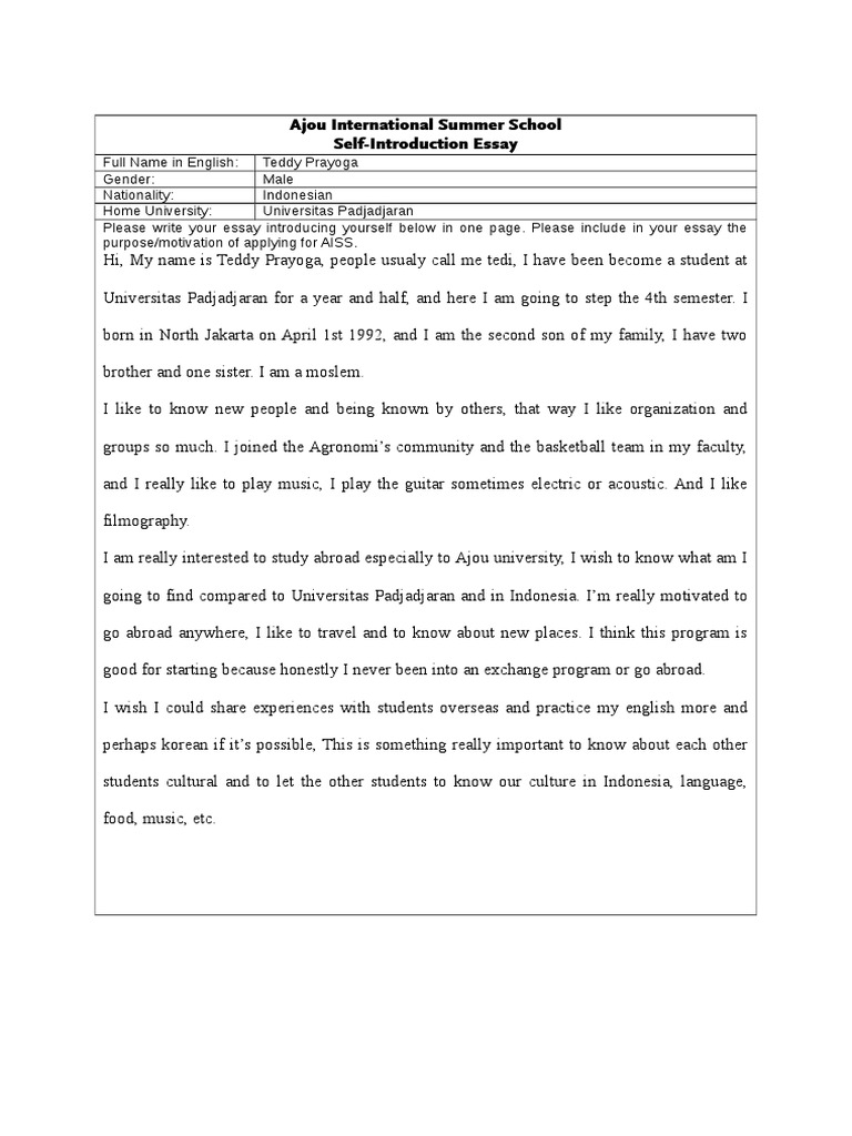 Self Introduction Essay For Exchange Student - Self introduction essays
