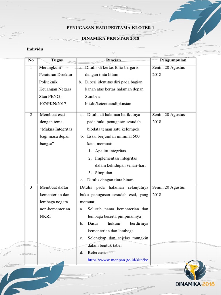 Penugasan Hari Pertama Kloter Satu DINAMIKA PKN STAN 2018.docx