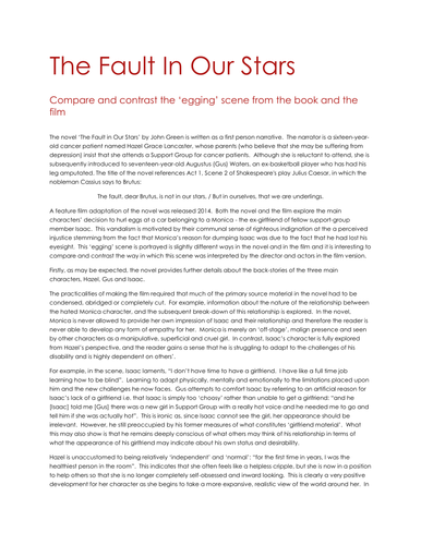 Higher English sample critical essay on the novel ‘The Fault in …