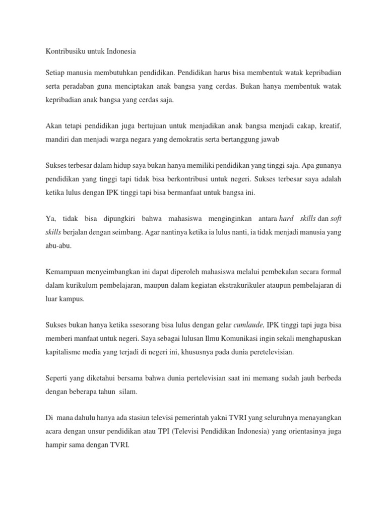Contoh essay aku untuk pendidikan indonesia