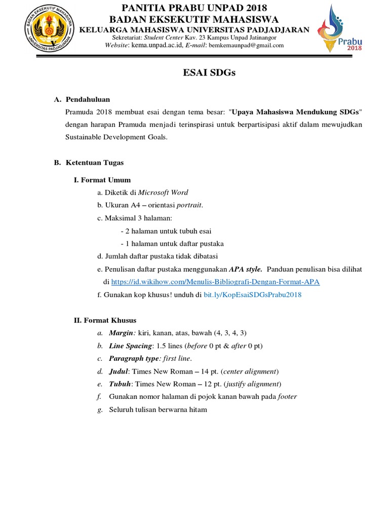 PANDUAN LOMBA NATIONAL ESSAY COMPETITION B. Tema Esai Realisasi SDG s Melalui Peran Mahasiswa dalam Pelestarian Alam - PDF Free Download