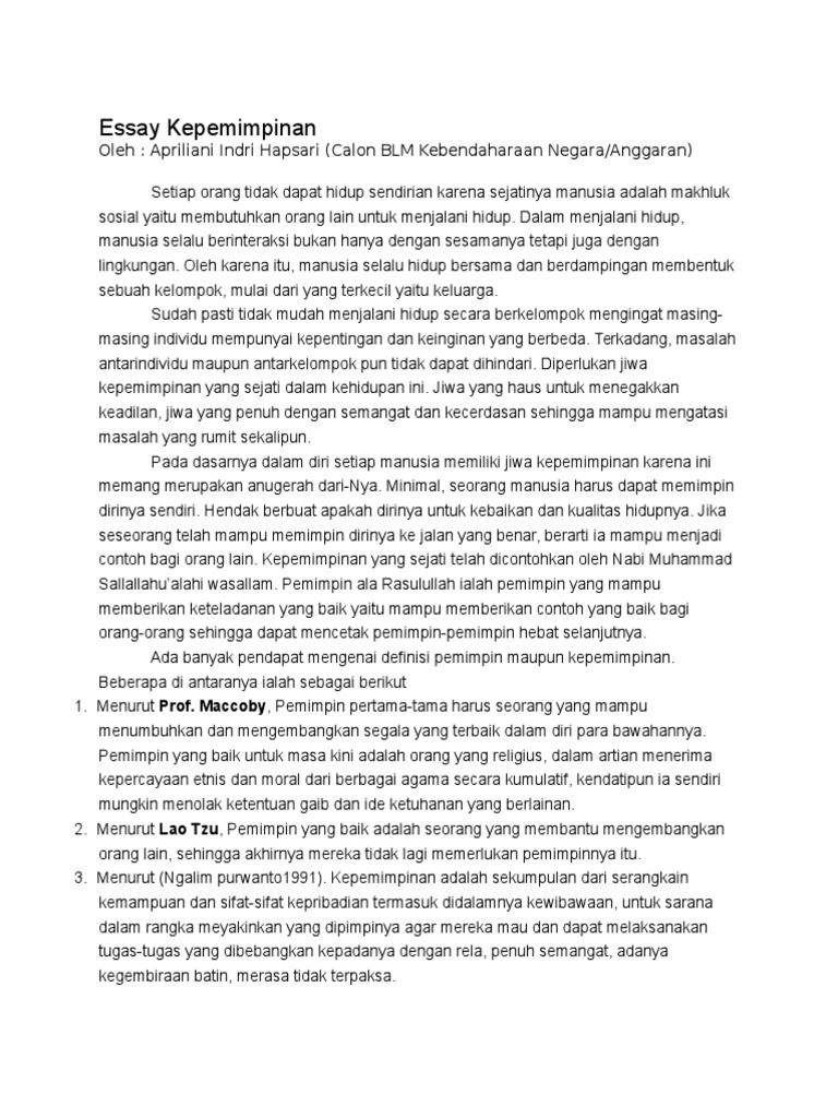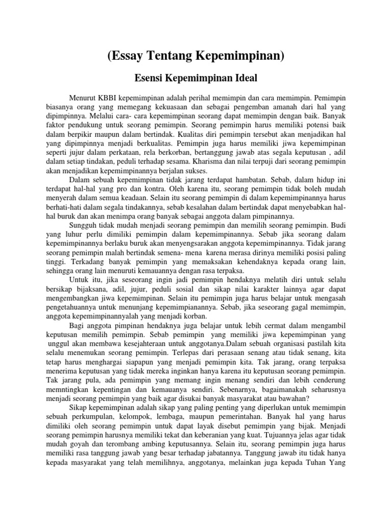 Contoh essay bahasa indonesia tentang kepemimpinan