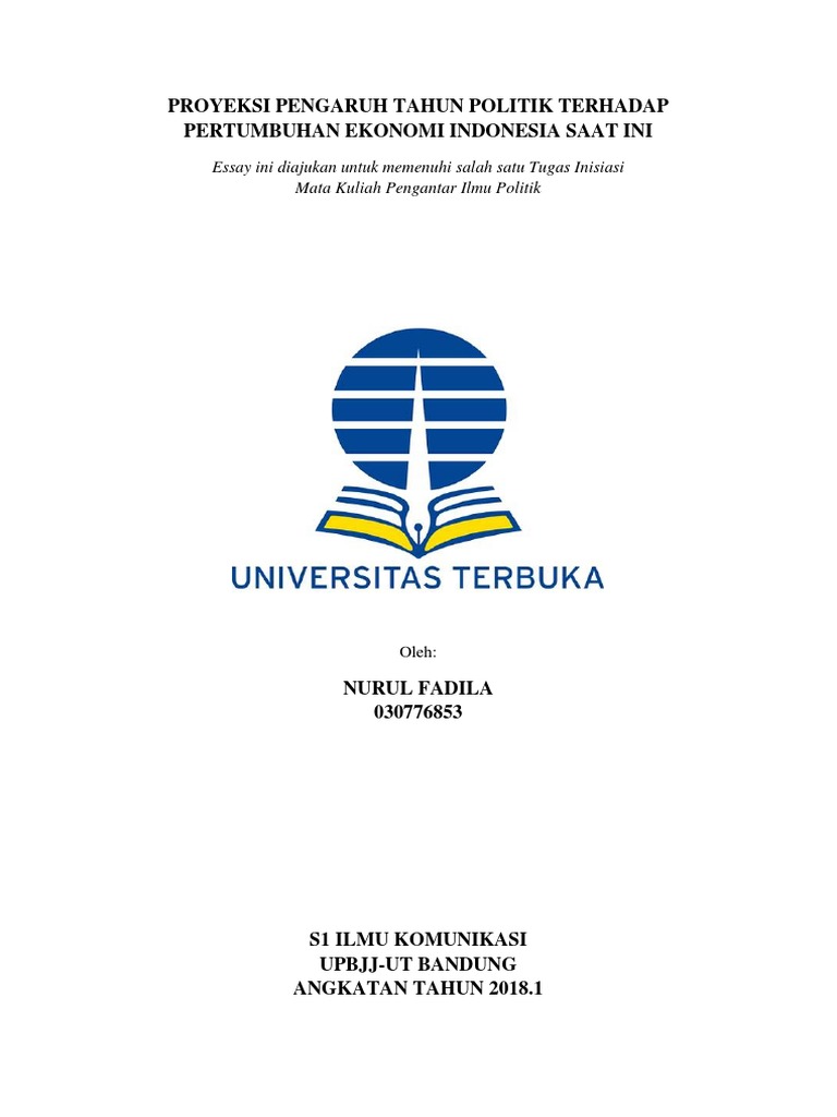 TUGAS 1 PENGANTAR ILMU POLITIK - ESSAY PROYEKSI PENGARUH TAHUN POLITIK TERHADAP PERTUMBUHAN EKONOMI INDONESIA SAAT INI.docx