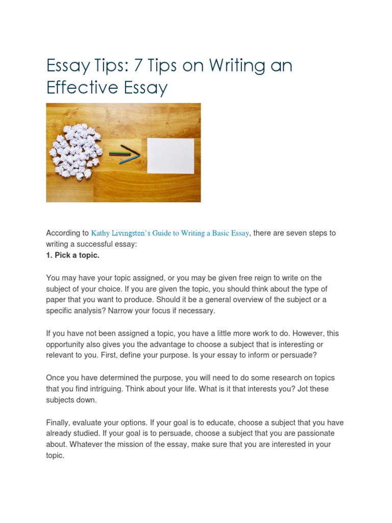 Essay Tips: 7 Tips on Writing an Effective Essay: Kathy Livingston’s Guide to Writing a Basic Essay | Essays | Thesis
