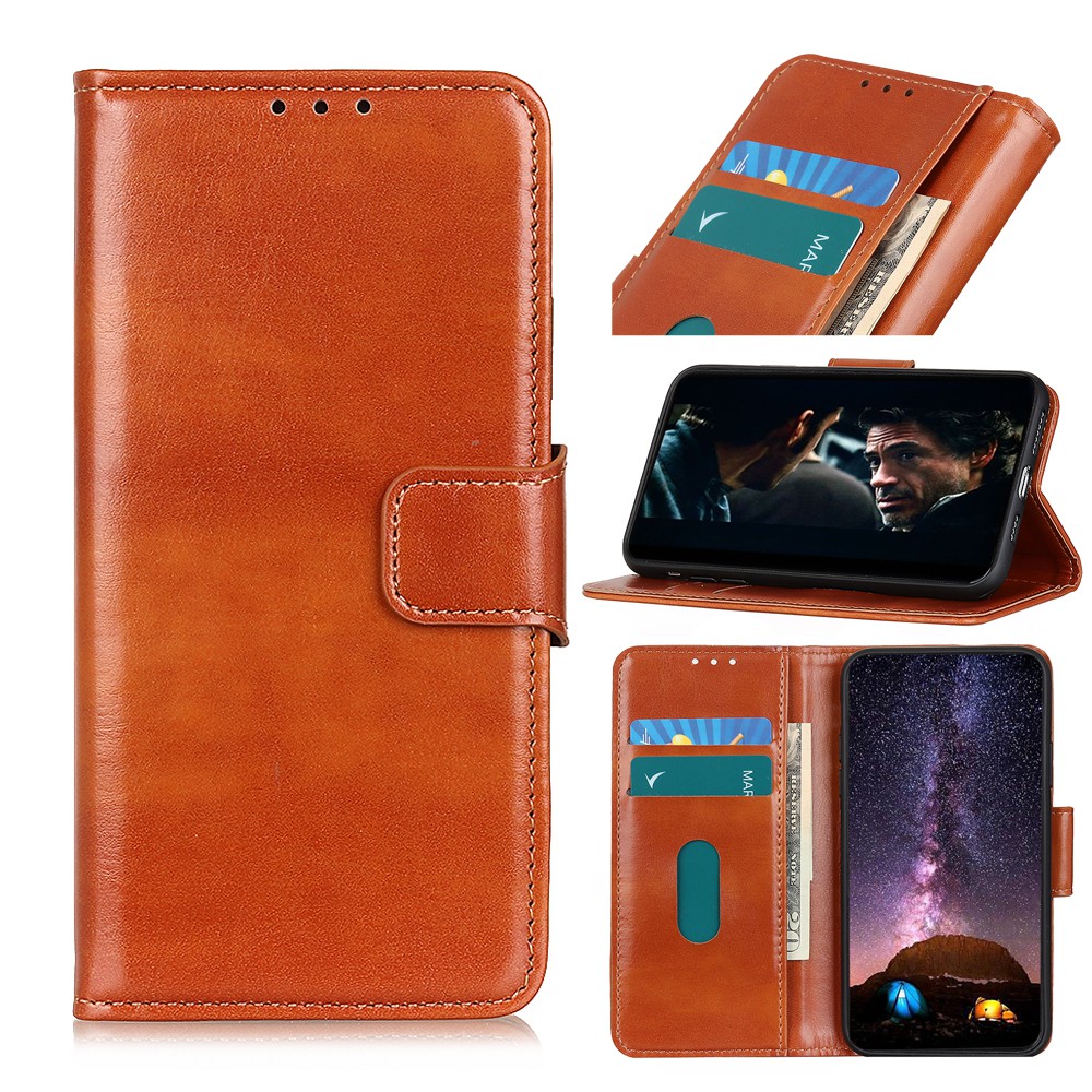 High Quality Crazy Horse [Vertical Flip] Leather Mobile Cover for Samsung Galaxy A50 - Brown TVC-Mall