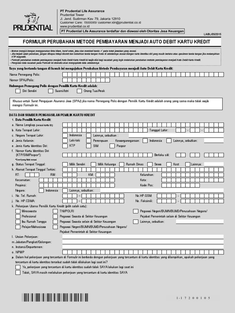 formulir perubahan metode pembayaran menjadi auto debit kartu …