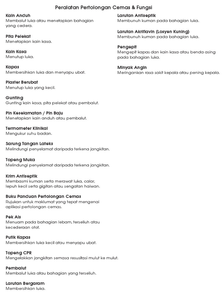 Bahan & Fungsi Peti Pertolongan Cemas