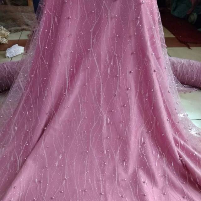 Kain bahan Tulle akar mutiara / brokat akar mutiara,bahan gaun,kebaya.( Harga permeter). | Shopee Indonesia