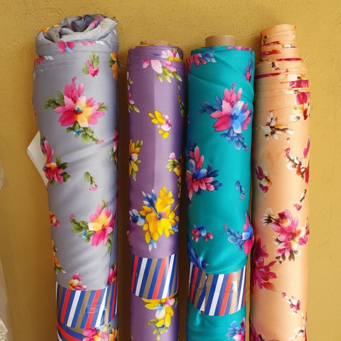 Bahan Kain Satin Fendi 4 Warna Motif Bunga Harga Per Yard di Lapak …