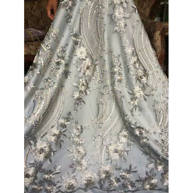Tulle bordir akar Korea / bahan brokat akar mutiara ( harga …