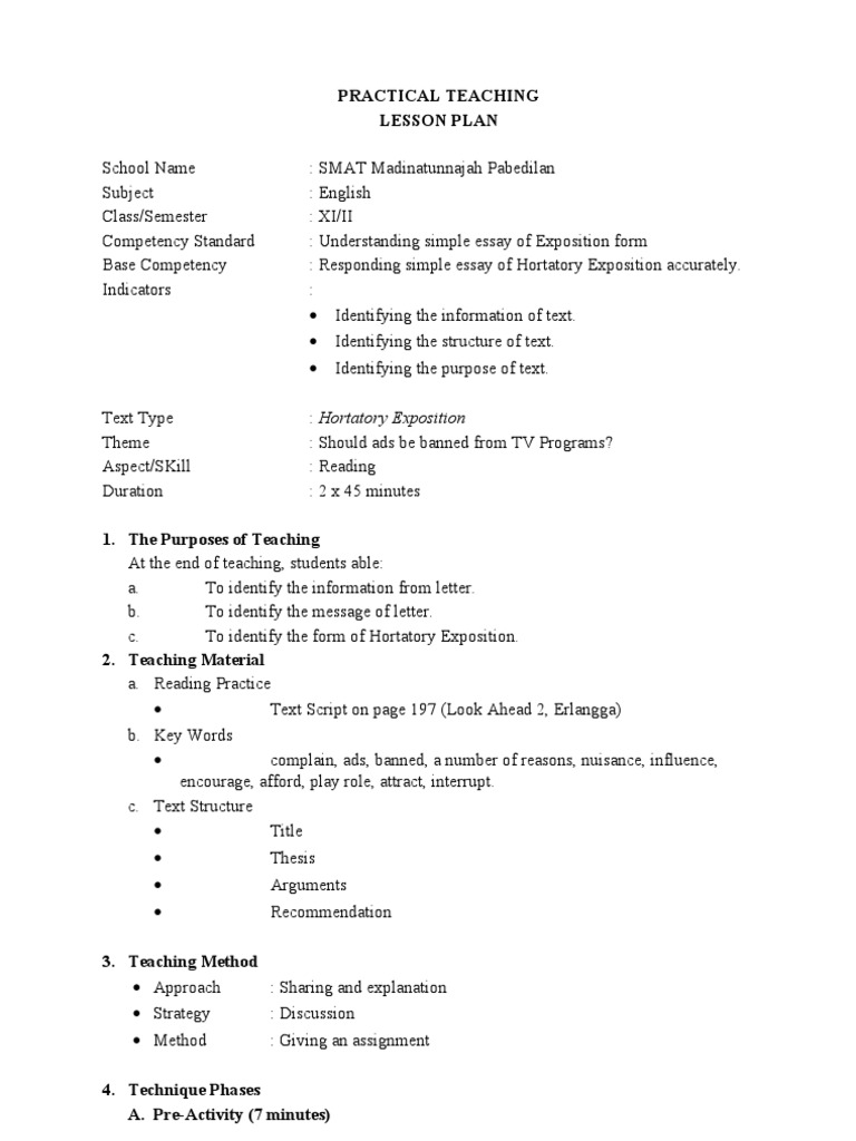 Lesson Plan (Reading) Hortatory Exposition | Advertising | Lesson Plan