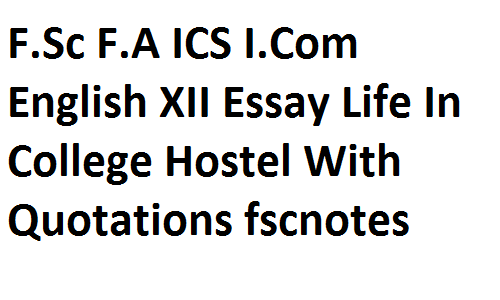 F.Sc F.A ICS I.Com English XII Essay Life In College Hostel With Quotations