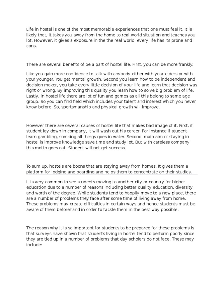 46 the hostel life short and long essay the college study