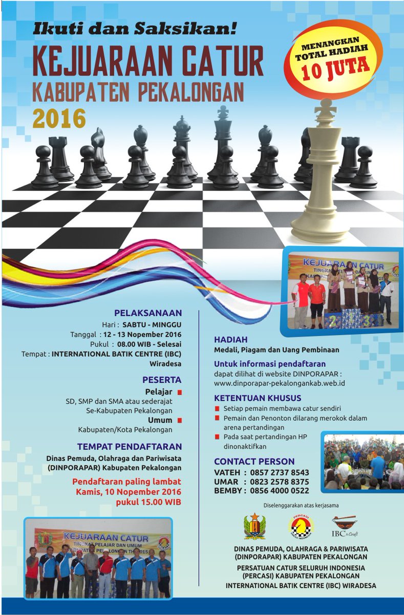 Info Wiradesa on Twitter: “#acarakajen Ikuti dan Saksikan! Kejuaraan Catur Kabupaten Pekalongan 2016, 12-13 November di International Batik Center (IBC) Wiradesa… https://t.co/b9EdZoXrkY”