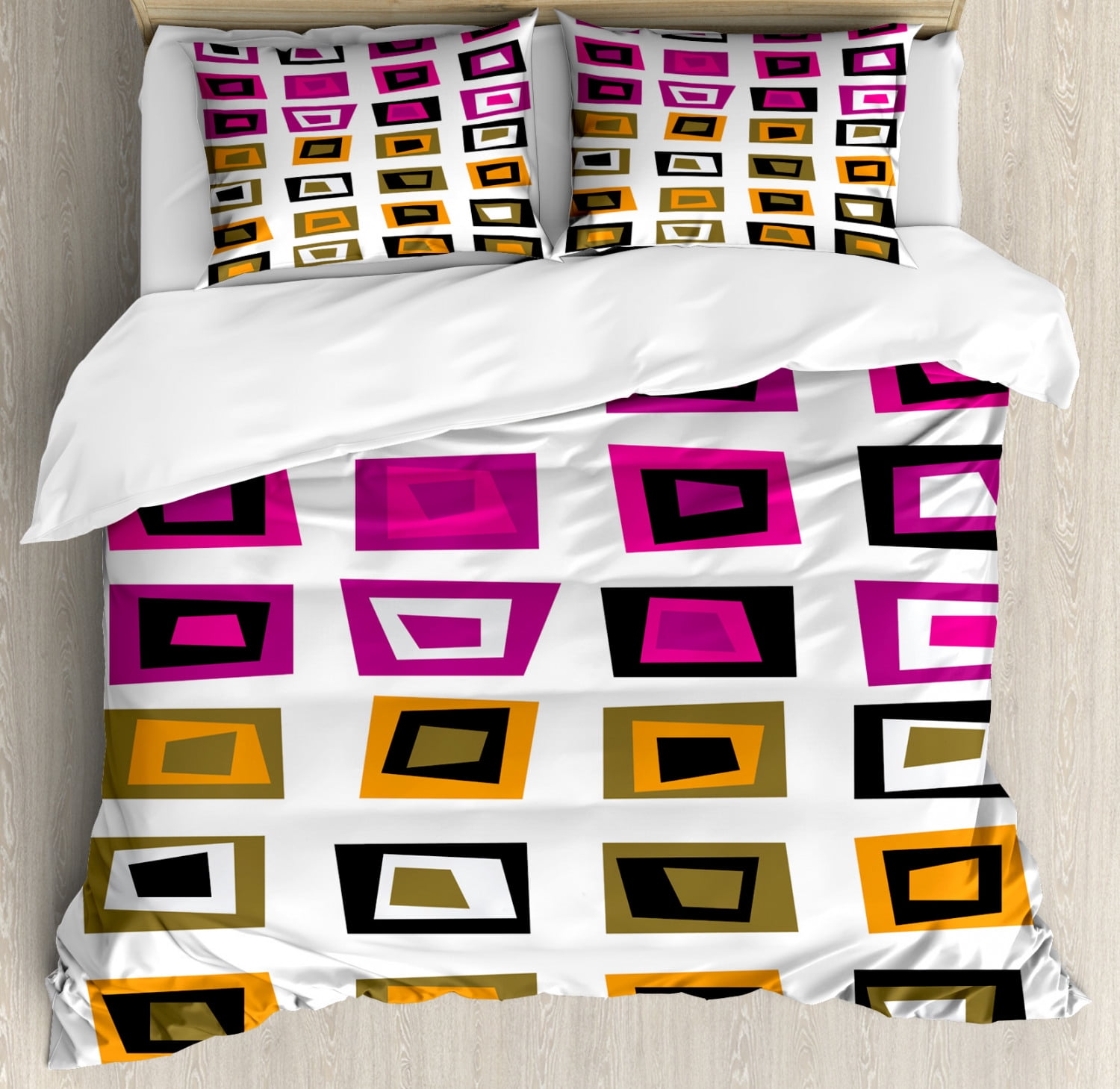 Retro Queen Size Duvet Cover Set, Pattern with Abstract Squares with Inner Shapes in Contrast Colors Sixties Style, Decorative 3 Piece Bedding Set with 2 Pillow Shams, Multicolor, by Ambesonne - Walmart.com -