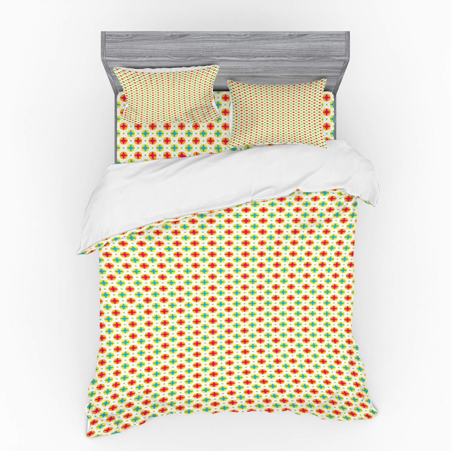 Retro Duvet Cover Set, Abstract Disc Shaped Circles with Inner Points and Wavy Hipster Pattern, Bedding Set with Shams and Fitted Sheet, 3 Sizes, by Ambesonne - Walmart.com - Walmart.com