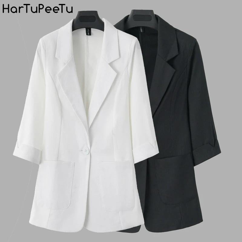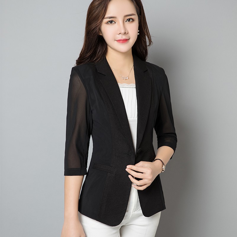 Wanita Kasual Musim Panas Blazer Longgar Wanita Kantor Memakai …