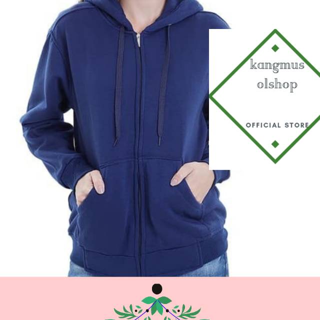 Jaket Hoodie Biru Dongker sweater wanita kain tebal halus dan gak …