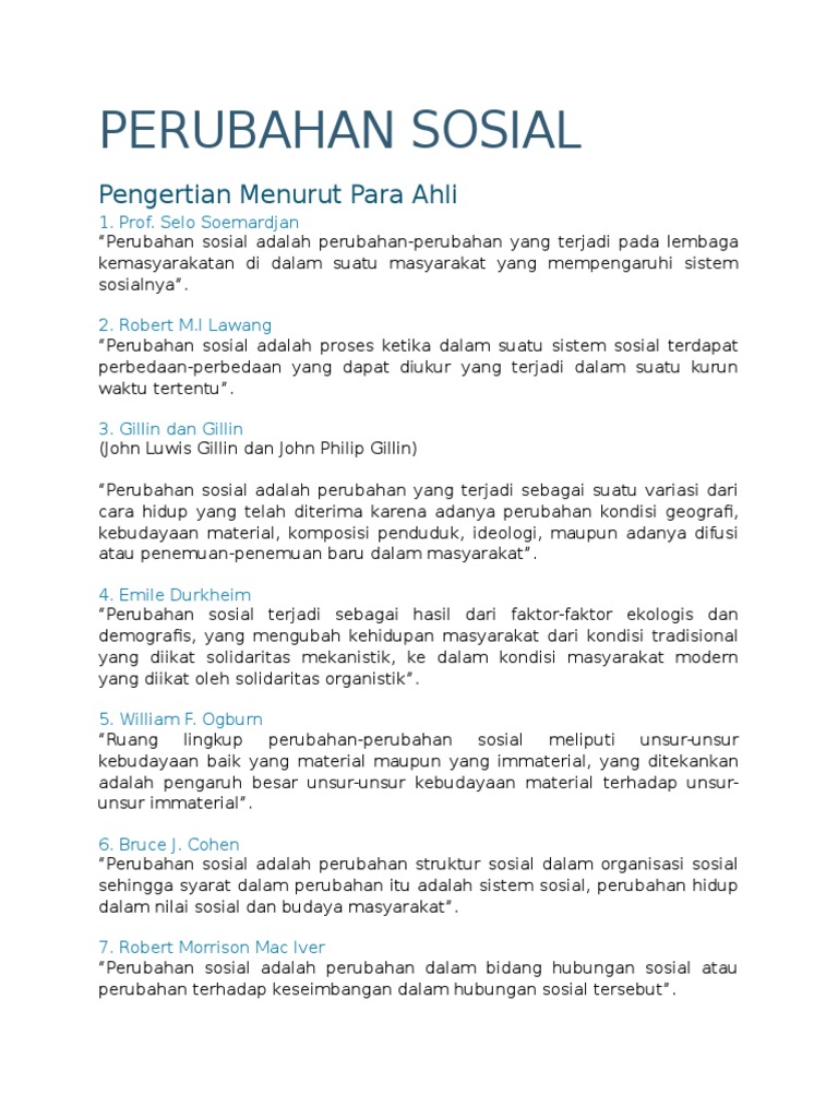PDF) Pengertian Perubahan Sosial menurut para ahli | Renova Reza - Academia.edu