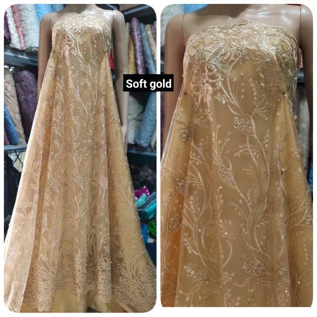 Bahan Kain Mewah Kebaya Gaun Tile Tille Tulle Brokat Gold Emas …