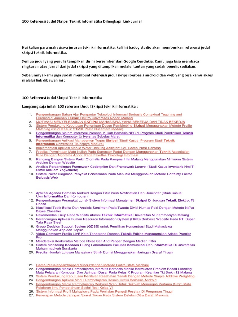 Kumpulan Judul Skripsi Teknik Informatika | by Relando Tri Hanggara | Medium