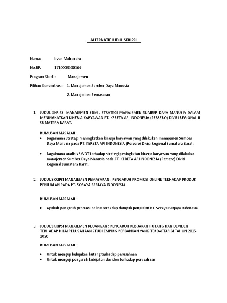 Contoh Judul Skripsi Manajemen Sdm 2 Variabel - Ide Judul Skripsi Universitas